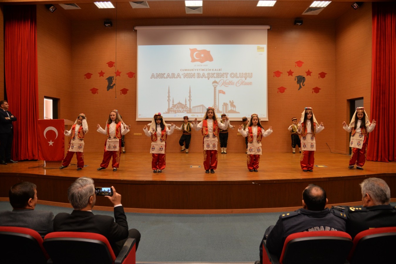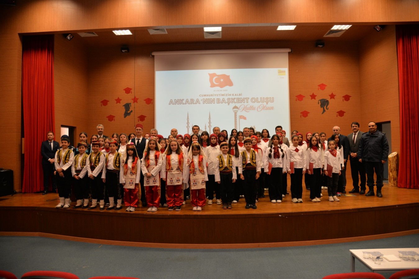 Saygı duruşu ve İstiklal Marşı’nın okunmasıyla başlayan program günün anlam ve önemine ilişkin konuşmalarla devam etti. Öğrenciler tarafından hazırlanan halk oyunu ve oratoryo gösterileri keyifli anlara sahne olurken koro halinde Cumhuriyet’in Başkenti Ankara’yı ele alan marşları seslendiren öğrenciler seyircilerin kulaklarının pasını sildi.